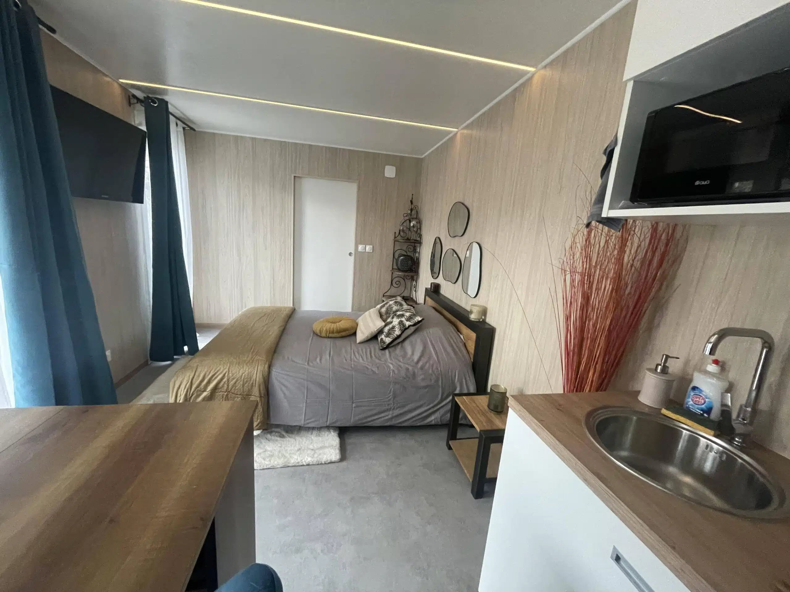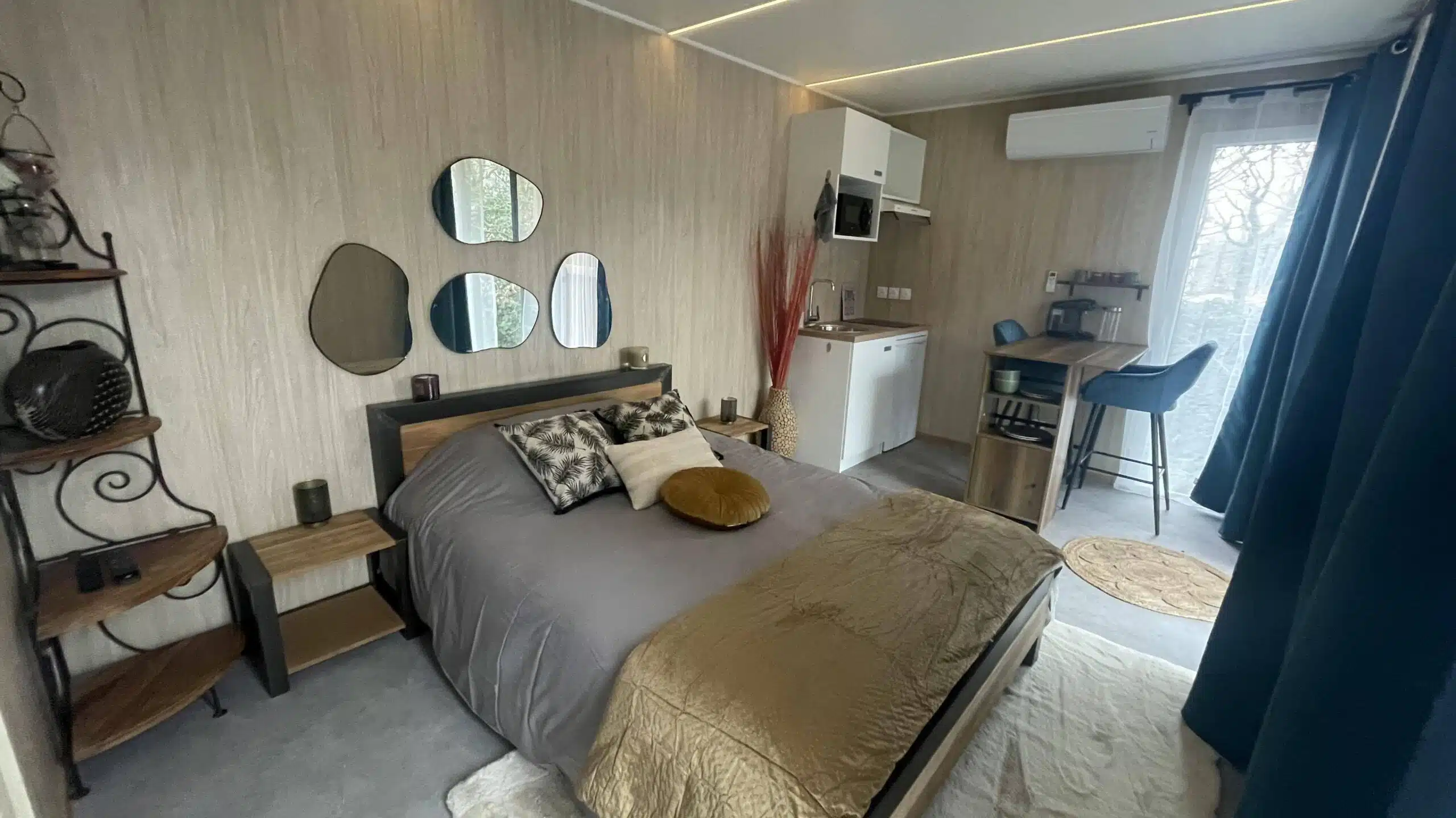 Pensé pour la chambre d’hôtes, ce studio de 20 m² propose un espace nuit confortable, une salle d’eau compacte et un coin détente ouvert sur la terrasse. Les hôtes profitent d’une atmosphère bois chaleureuse, propice aux séjours nature au cœur du Périgord. L’implantation soignée optimise l’ensoleillement et préserve l’intimité, un atout pour la rentabilité d’un hébergement touristique en Dordogne.