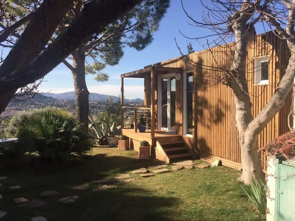 À deux pas de Marseille, dans les Bouches-du-Rhône, Corinne a transformé son jardin en une chambre d’hôtes de 20 m² avec vue imprenable, idéale pour les voyageurs en Provence. Cliente Greenkub, elle souhaitait un hébergement chaleureux, confortable et rentable, s’intégrant parfaitement au paysage méditerranéen.