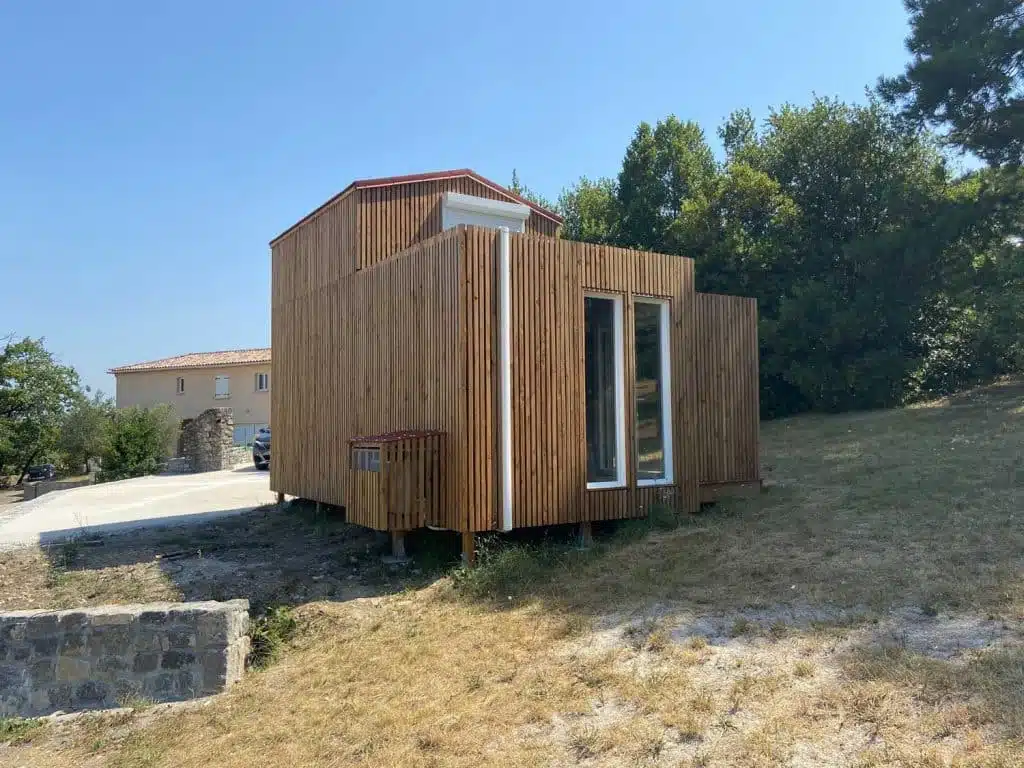 Au cœur du Gard, Maxime et Clara souhaitaient valoriser leur terrain avec un hébergement confortable et élégant. Leur choix s’est porté sur une maison de jardin de 25 m², pensée pour accueillir 4 personnes en location saisonnière, avec mezzanine et grande ouverture sur le paysage.