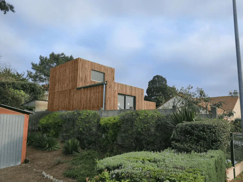 Résultat. Christiane profite désormais d’une chambre d’amis indépendante, chaleureuse et performante, prête à accueillir proches et visiteurs dans les meilleures conditions. Vous avez un projet similaire en Loire-Atlantique ou ailleurs ? Demandez un devis pour votre maison de jardin en ossature bois et bénéficiez d’une construction rapide, durable et à haute performance énergétique.