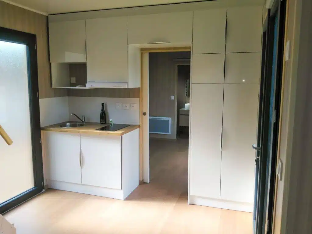 Un confort de maison individuelle, dans le jardin. Cet habitat combine une pièce de vie lumineuse, une cuisine premium, une salle d’eau, des rangements optimisés et un couchage double, le tout prolongé par une extension de terrasse pour des moments conviviaux. La toiture végétalisée améliore le confort d’été, l’esthétique et la performance énergétique. Conçue comme chambre d’amis, cette maison de jardin peut évoluer vers une chambre d’hôtes, un studio étudiant ou un bureau de jardin selon les besoins.