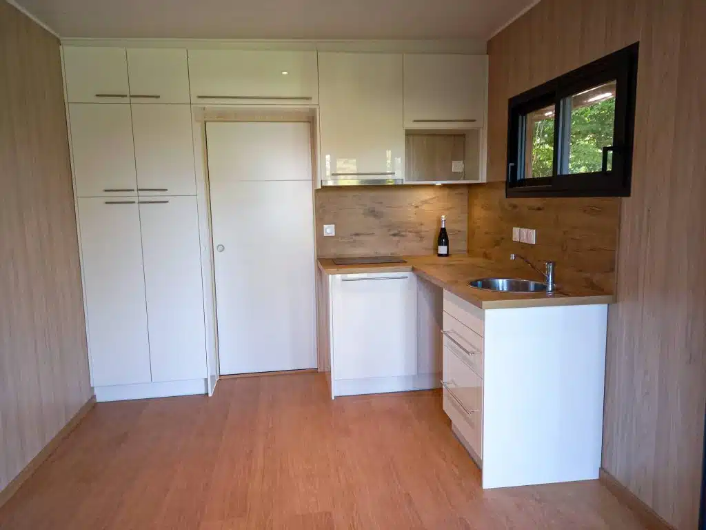 Projet client réel: Anne, cliente Greenkub dans le Nord (59), souhaitait créer une chambre d’amis autonome dans son jardin. Elle a choisi un studio de jardin de 20 m² en ossature bois, équipé d’une salle de bain et d’une cuisine premium avec de nombreux rangements. Résultat: un espace confortable et indépendant pour accueillir famille et amis, directement à son domicile en Hauts-de-France.