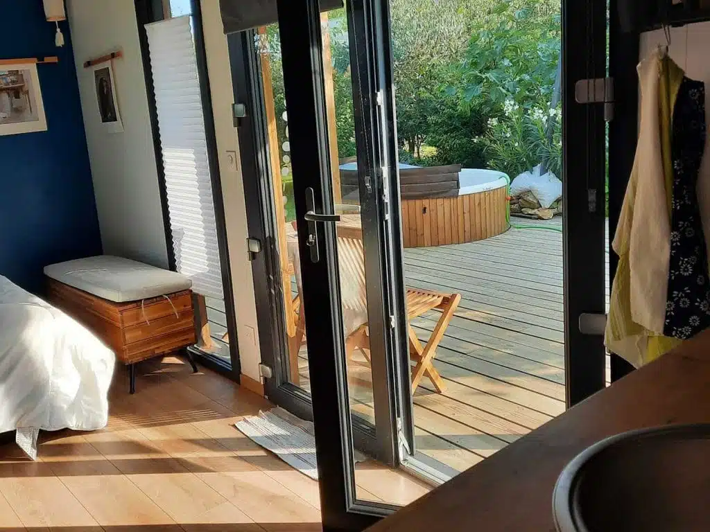 Conçu de plain-pied pour répondre aux contraintes d’urbanisme locales, ce studio de jardin en ossature bois regroupe une vraie cuisine, une salle de bain premium (douche design, WC suspendu, meuble vasque avec rangements) et des rangements optimisés. Les hôtes de Janie bénéficient d’une parfaite autonomie, avec le confort d’une suite indépendante. Ce format conviendrait également à un studio étudiant, une chambre d’hôtes ou une petite suite parentale.