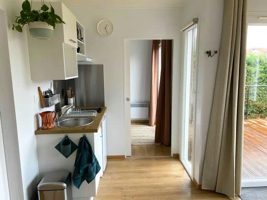 Avec l’accompagnement de notre architecte conseil, un plan sur mesure a été conçu : un studio de plain-pied de 25 m² qui sépare la chambre, l’espace de vie et la cuisine, et s’ouvre sur une vaste terrasse orientée pour capter la lumière landaise. Résultat : une expérience premium pour les voyageurs tout en maximisant le taux d’occupation.