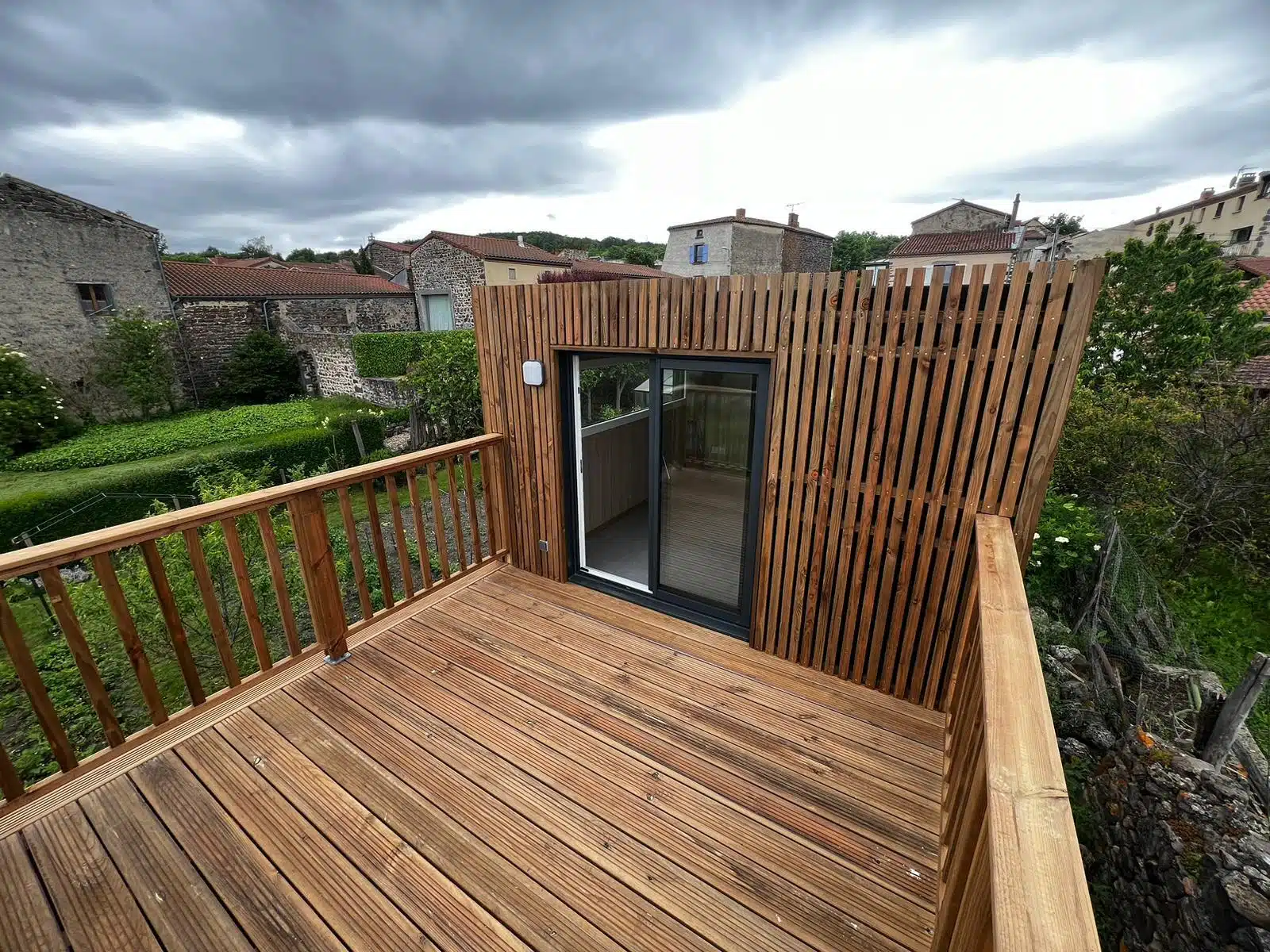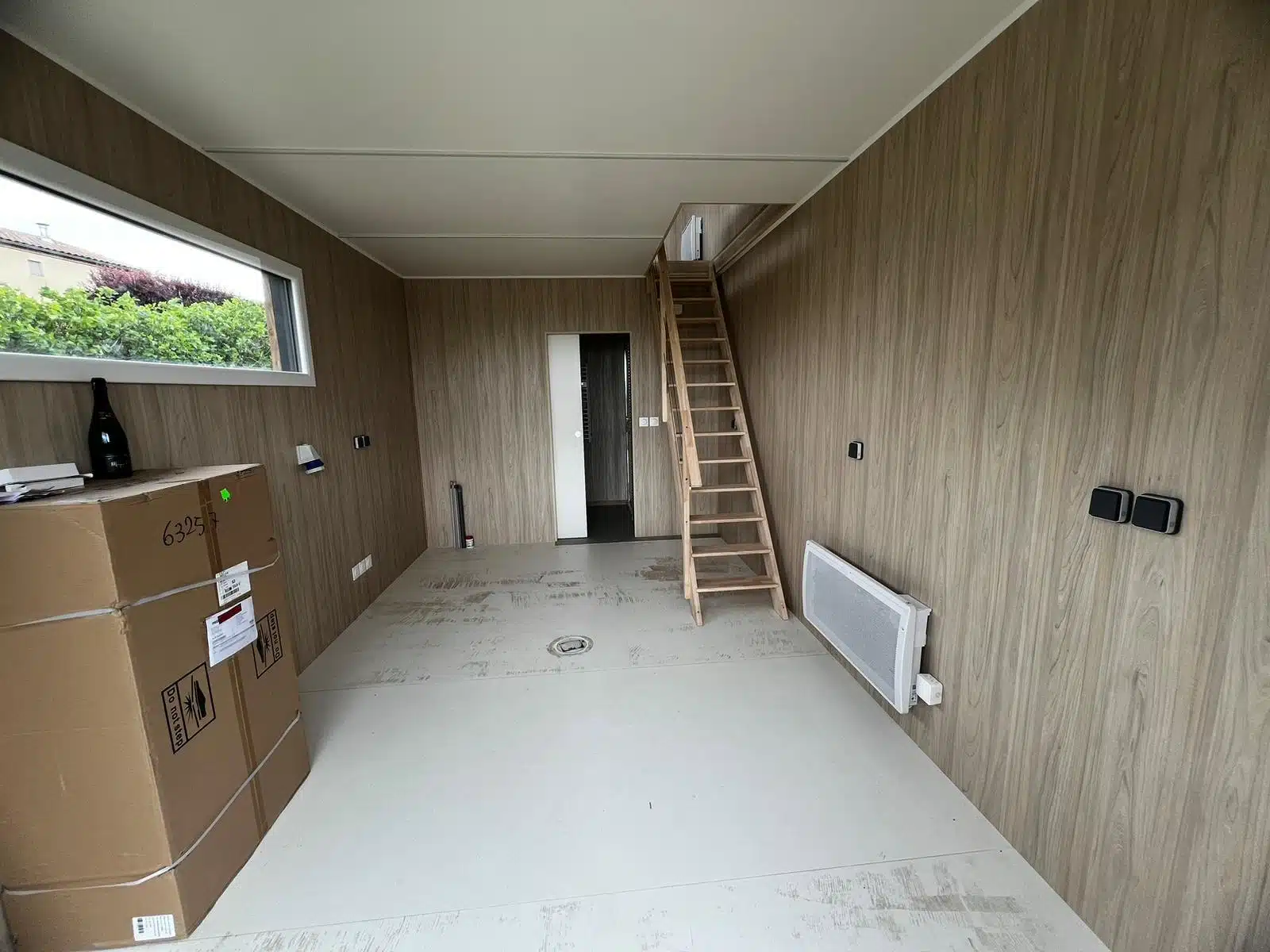 Au Puy-de-Dôme, Lucas, client Greenkub, a transformé l’espace inoccupé de son jardin en local professionnel performant: une microbrasserie au rez-de-chaussée et une chambre à l’étage. Notre studio de jardin de 30 m² combine mezzanine et terrasse tropézienne pour maximiser la surface utile tout en ouvrant les vues sur le paysage auvergnat.