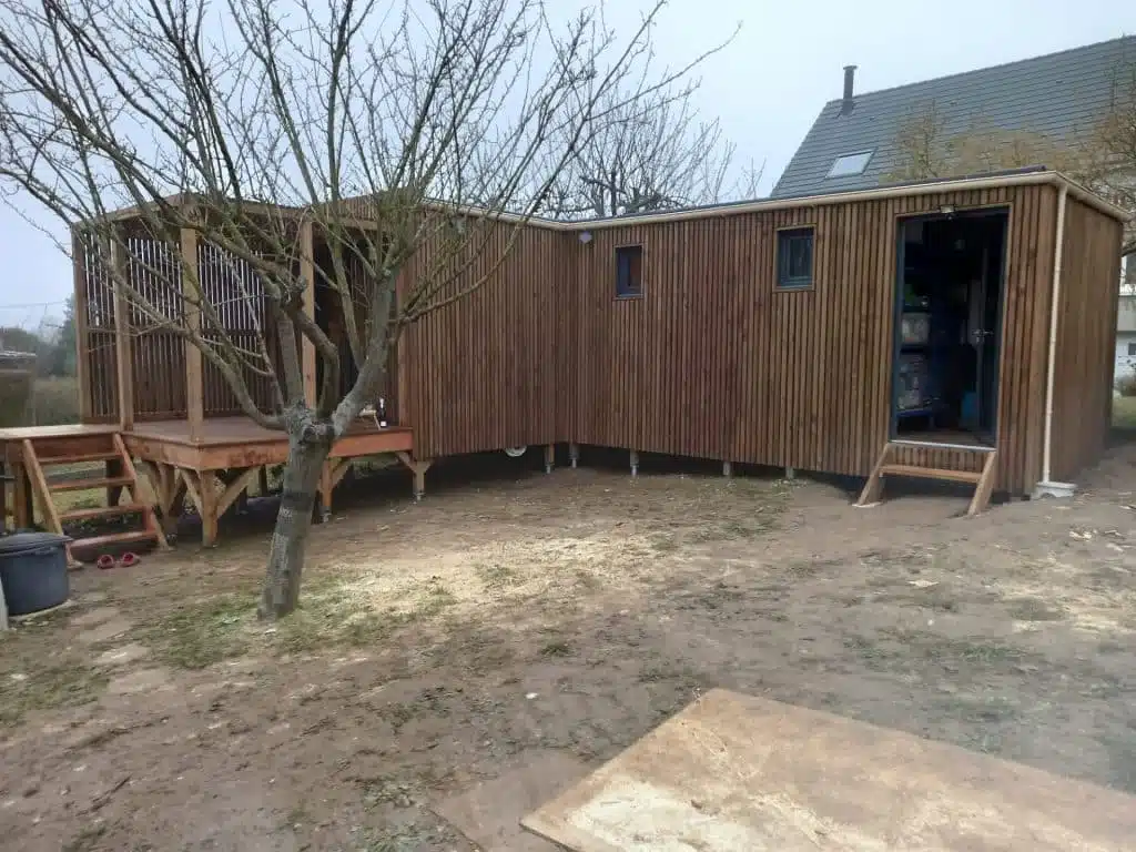 Accompagnement et démarches en Eure: nous avons validé la faisabilité, réalisé l’étude du PLU de sa commune et préparé la déclaration préalable de travaux. L’accord de la mairie a été obtenu en un mois, permettant de lancer la préfabrication bois en atelier. Ce studio s’intègre harmonieusement dans son jardin, proche d’Évreux, Louviers ou Vernon, et valorise le bien dans la durée.
