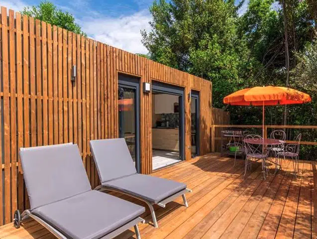 Notre client Eric, habitant du Gard, vit de la location courte et longue durée. Avec plusieurs maisons dédiées à la location, il souhaitait ajouter un hébergement au charme naturel qui se distingue. Séduit par Greenkub après l’avoir découvert à la radio, il a retenu un projet de plain-pied de 35 m² avec grande terrasse pour profiter du soleil gardois, huisseries anthracite et volets roulants électriques. Professionnel du bâtiment, il a choisi de réaliser lui-même l’aménagement intérieur; nous avons livré la structure prête à personnaliser.