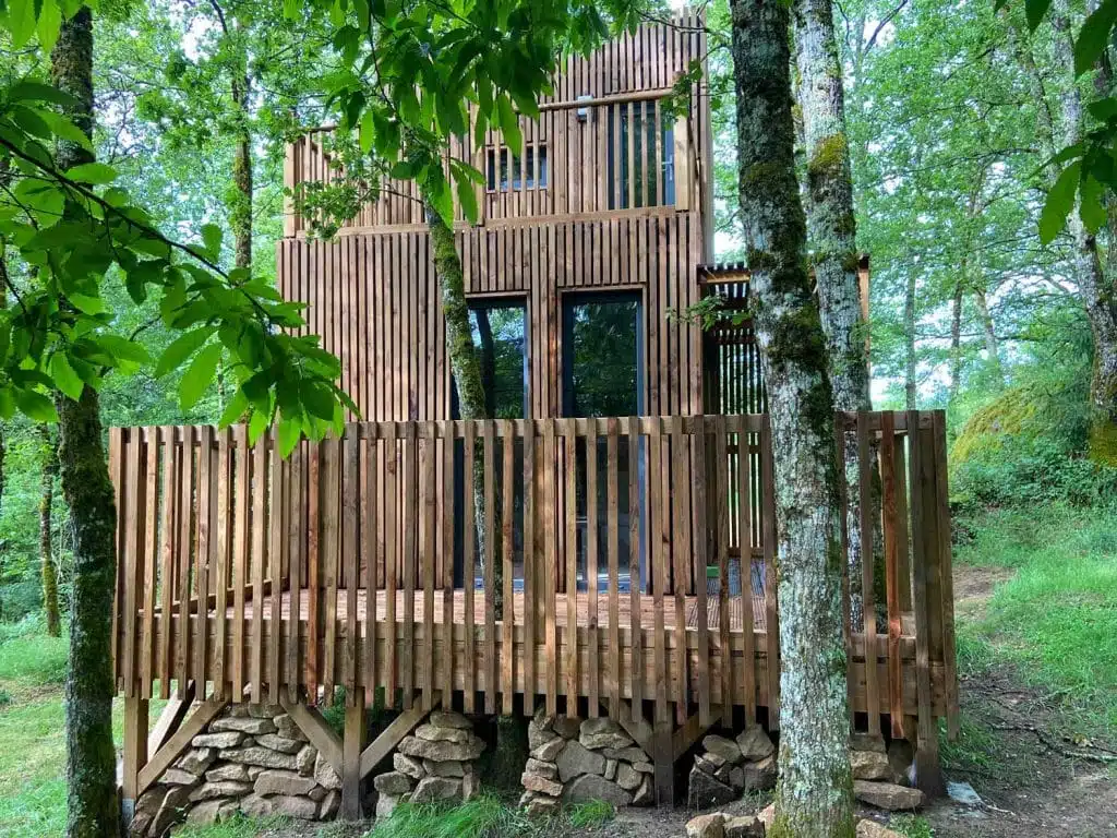 Conçue et fabriquée en préfabrication bois, l’extension repose sur une charpente bois robuste, un bardage bois soigné et des composants en bois massif. Loin de la fuste traditionnelle en rondins, ce préfabriqué bois modernise l’esthétique avec des lignes épurées. Après étude de sol, les fondations ont été dimensionnées pour préserver la forêt et assurer la stabilité. L’étanchéité, l’isolation et les menuiseries performantes garantissent un haut niveau de confort. La pose s’est déroulée en 10 jours seulement: une construction rapide et clé en main, avec un kit bois optimisé pour limiter les nuisances sur site.